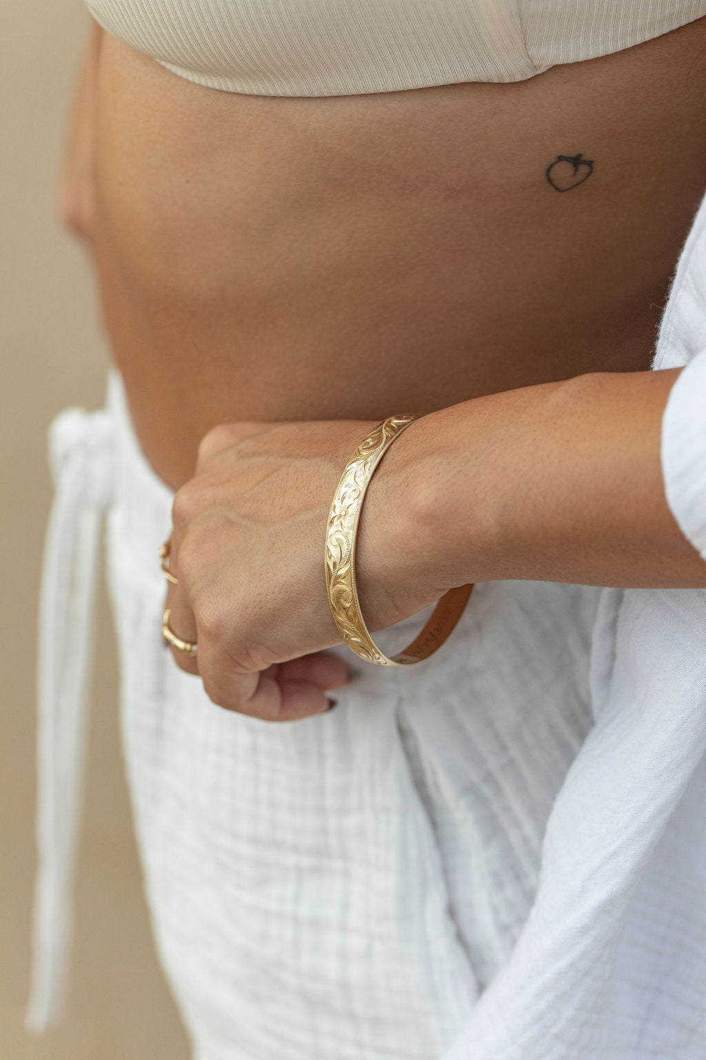 ![14K Gold Hawaiian Heirloom Jewelry Bracelet [10mm width] Black Enamel Custom Name Lettering](http://www.happylaulea.com/cdn/shop/files/5E8A0912_1.jpg?v=1728014989&width=1024)